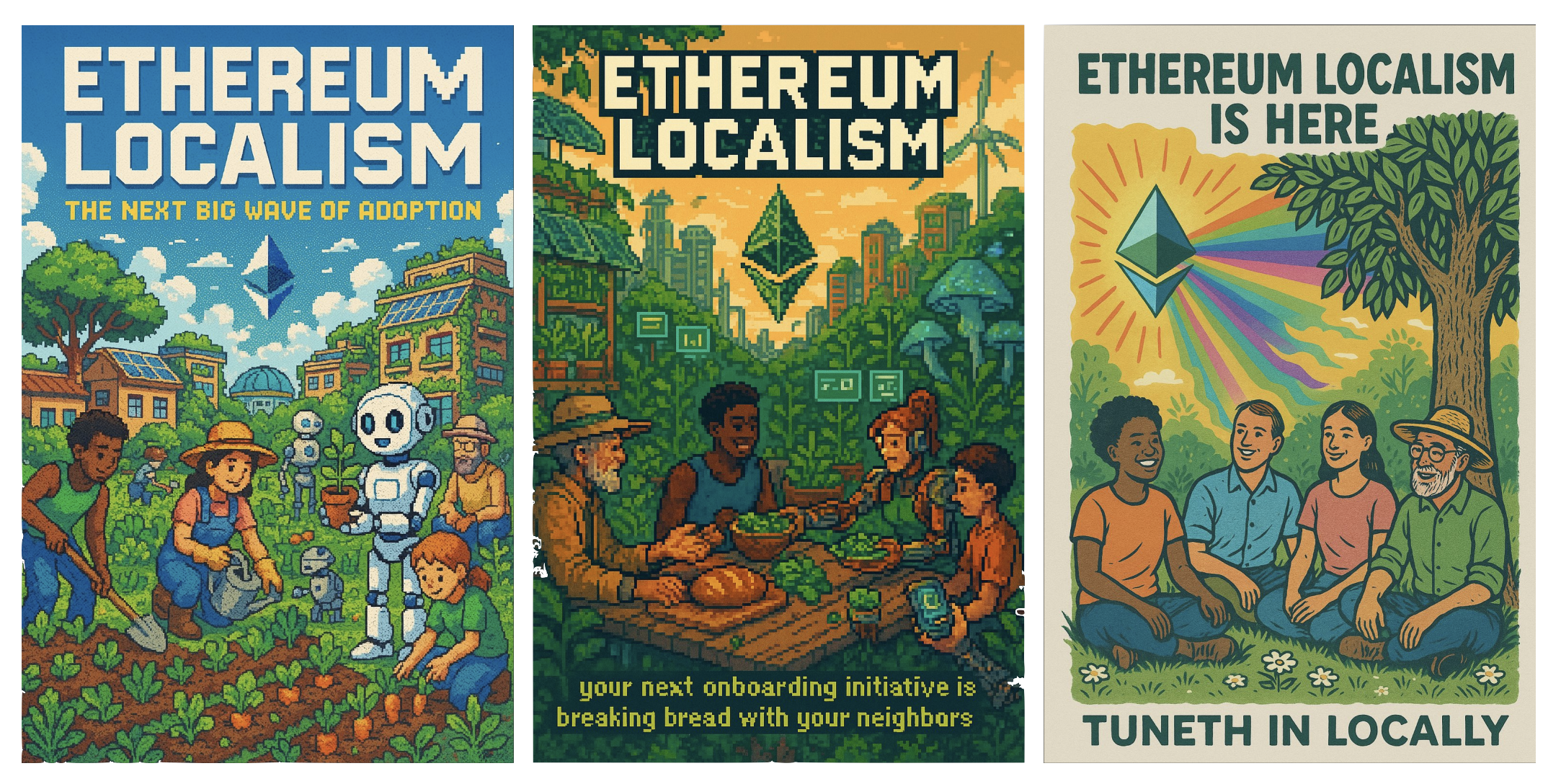 - Ethereum Localism: Ethereum-based infrastructure and tools —payments, identity/attestations, governance, open data—to empower local coordination without extracting.