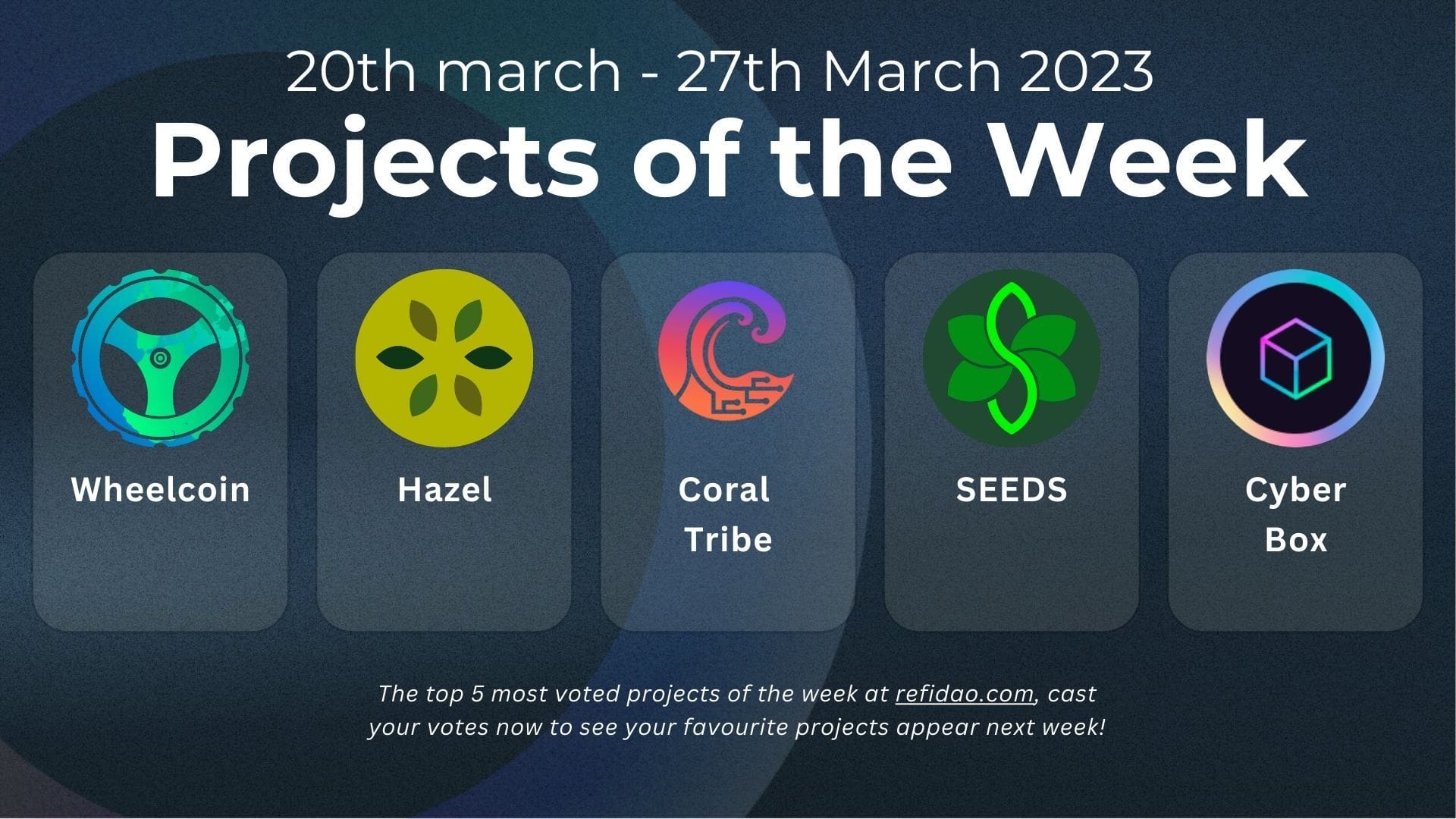 Top 5 most-voted projects of the week at refidao.com: