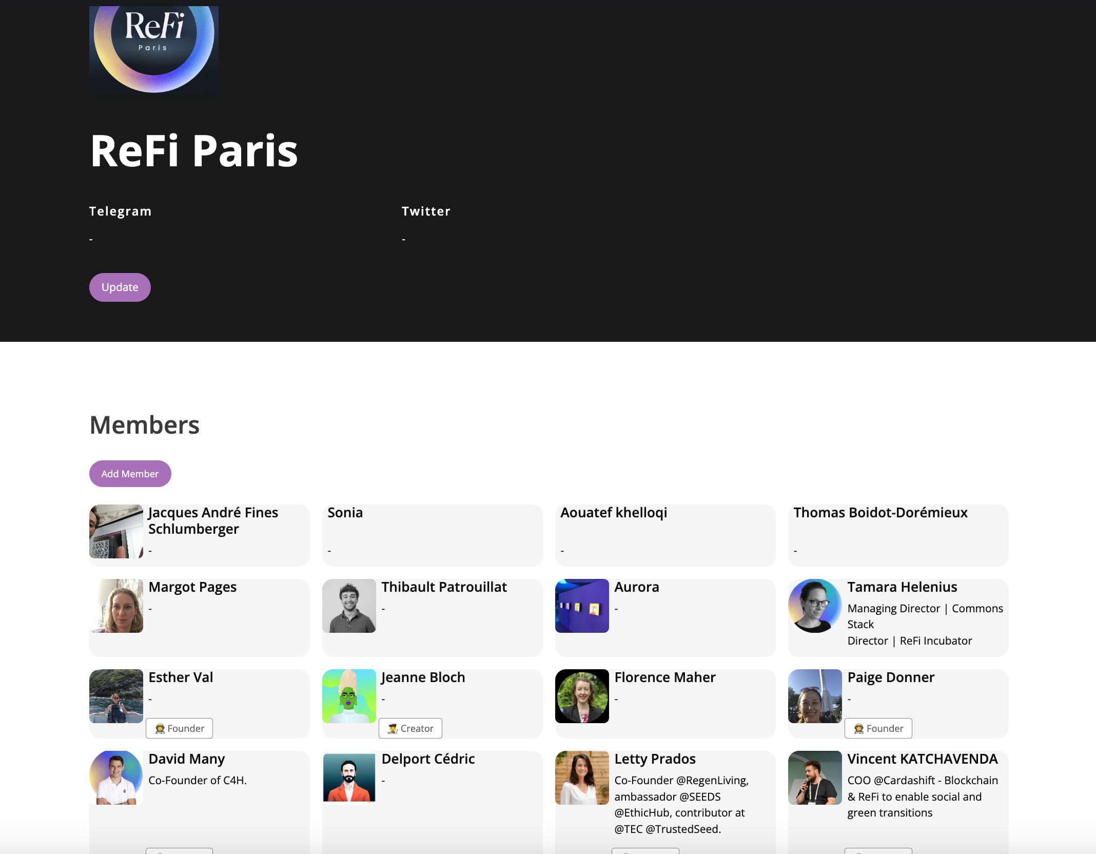 Emilia and Monty also hosted the first ReFi DAO network mapping session, starting the foundation for building key intelligence on local actors, projects and institutions for regeneration. Check out the Alpha dashboard and apply to join π